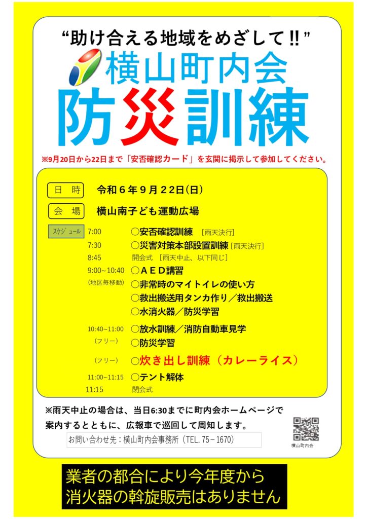 • 防災訓練 中止のお知らせ 2024年9月21日
